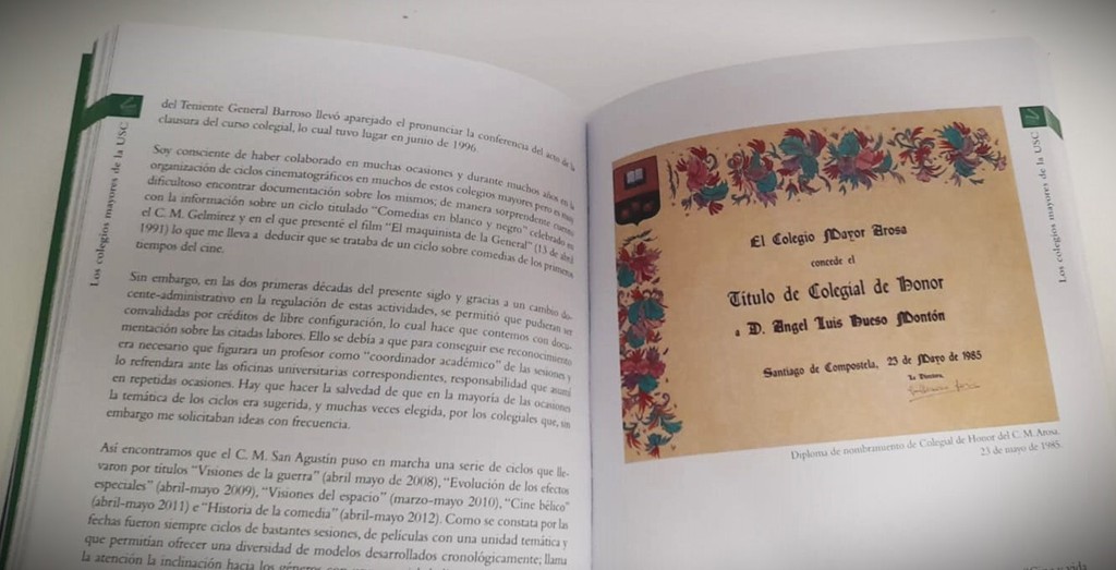 Nuestra presencia no fue solo física: también estamos presentes en las páginas de su obra, donde el profesor Hueso dedica un cariñoso espacio a los Colegios Mayores, y entre ellos, al nuestro.